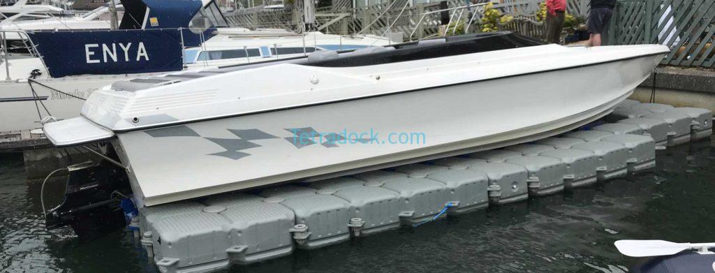 thumbnail loading thumbnail loading thumbnail loading thumbnail loading Extreme 8m Powerboat 7.5 x 3 metre dock with 800 litre Air Support System – in Port Solent